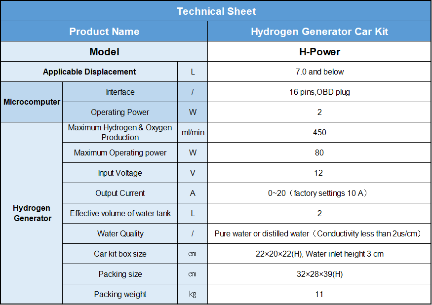 Notre produit utilise l’électrolyse de l’eau pure pour générer de l’hydrogène, éliminant ainsi le besoin d’additifs ou de réactifs chimiques. L’hydrogène est introduit dans le système d’admission du moteur avec l’air, ne nécessitant aucune modification du véhicule. Le seul consommable est l’eau pure. Choisissez notre unité de production d’hydrogène PEM pour une solution sûre, efficace et respectueuse de l’environnement afin d’améliorer les performances de votre véhicule.